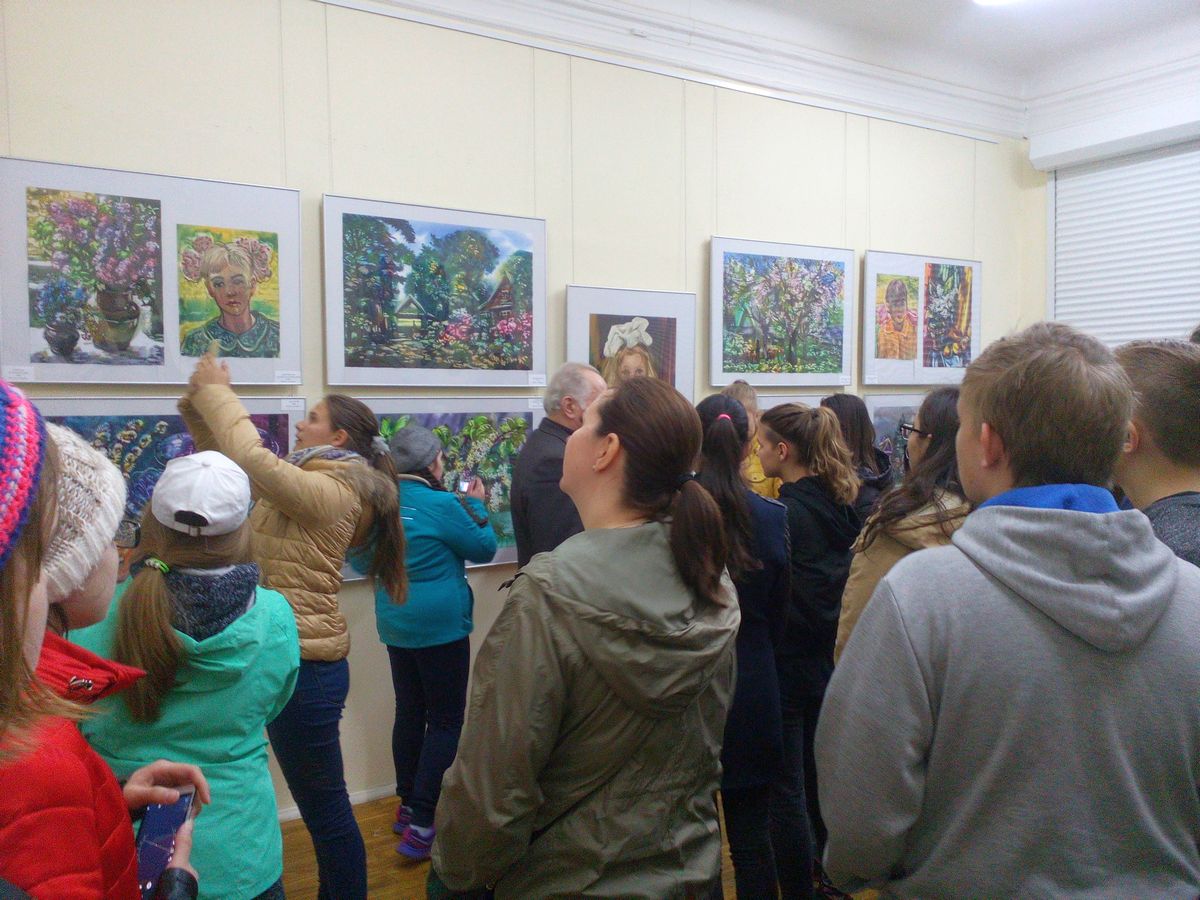 Участники пленера на выставке работ художника-акварелиста Ф. Гумена.